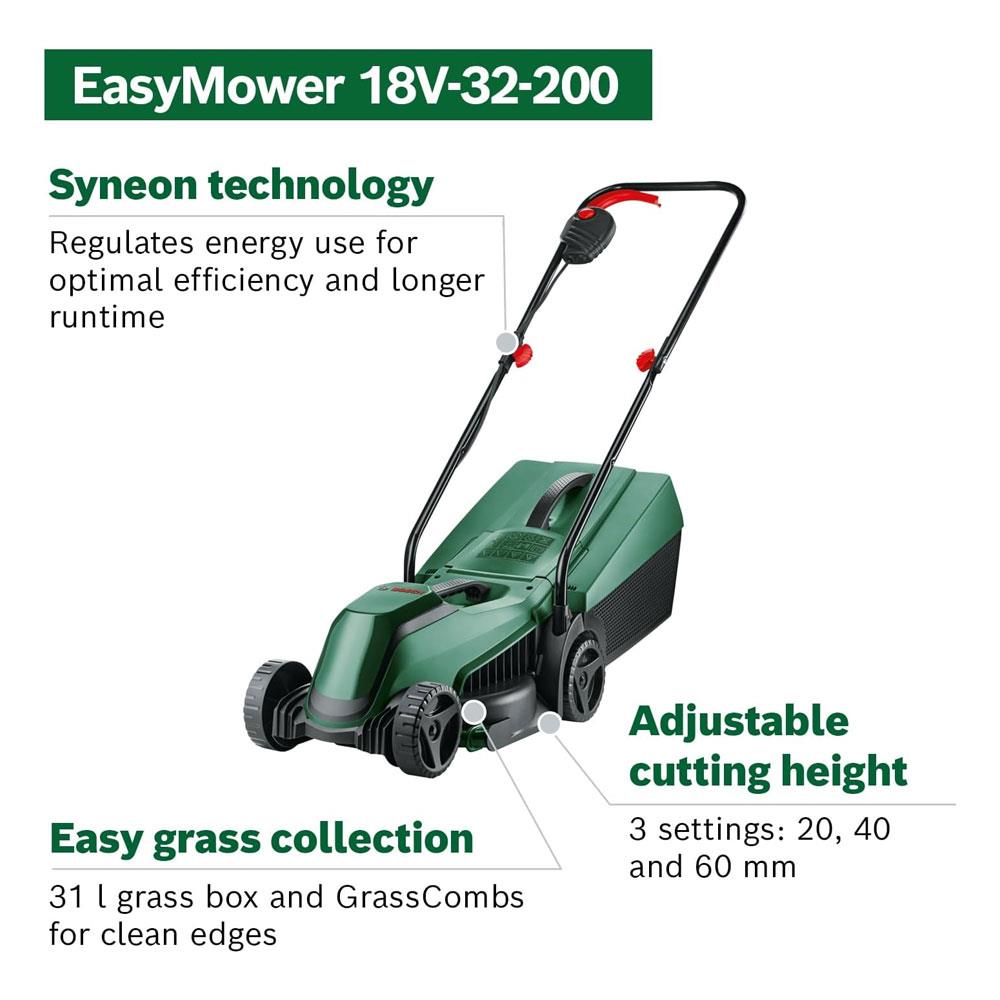 Bosch EasyMower 18V-32-200 Cordless Lawnmower 1 x 4.0 Ah Battery 4 Ah Charger - Green - Image 4