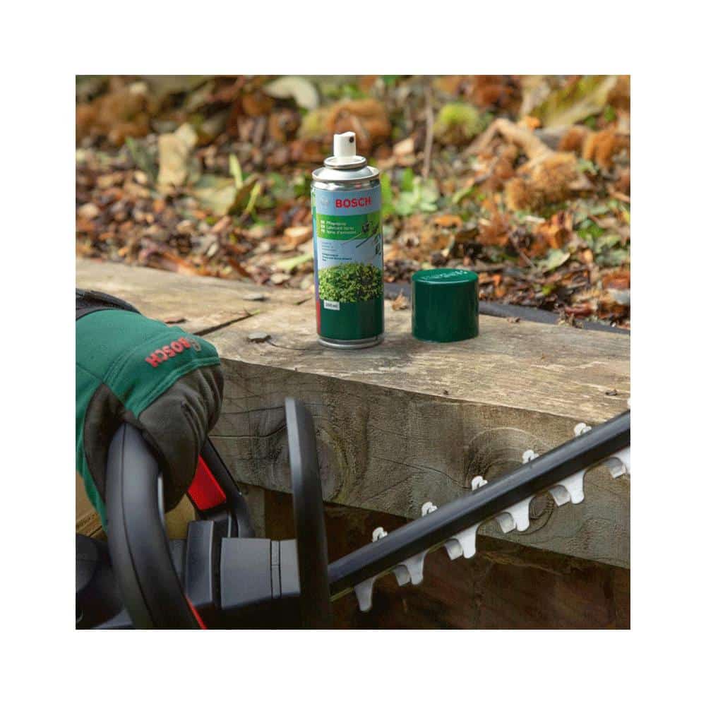 Use the Bosch Lubricant Spray for maintaining the garden tools’ reliable performance.