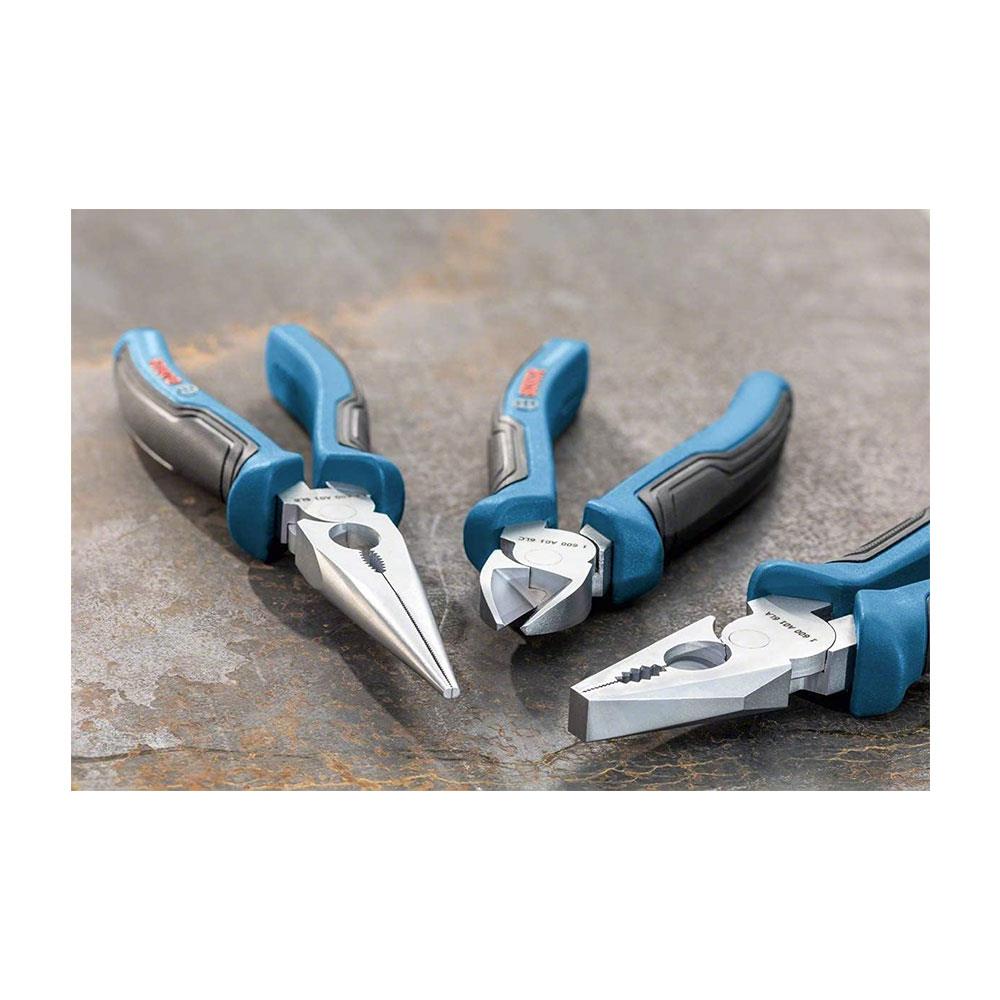 Bosch Professional 3 Pliers Set Combination Pliers 180mm Needle-Nose Pliers 200mm & Side Cutters 160mm – Blue/Black