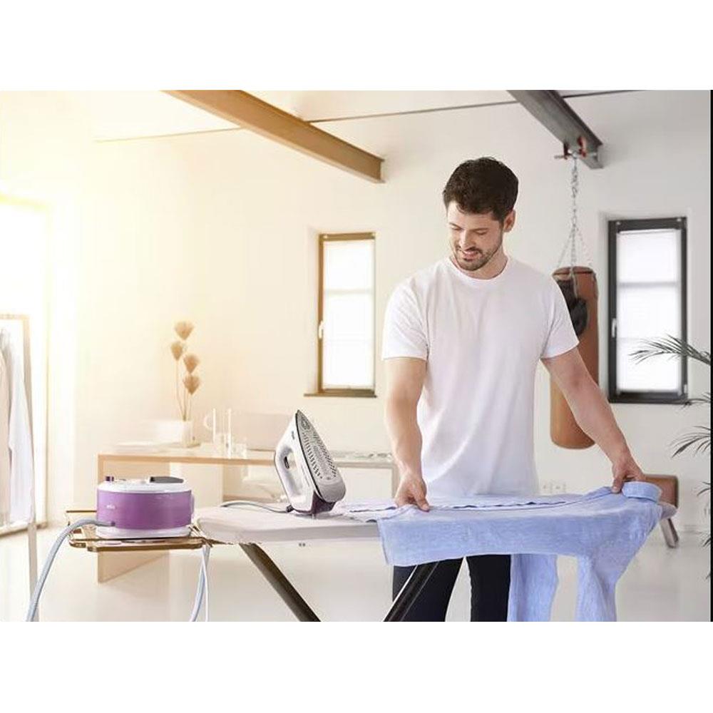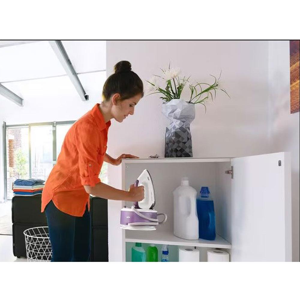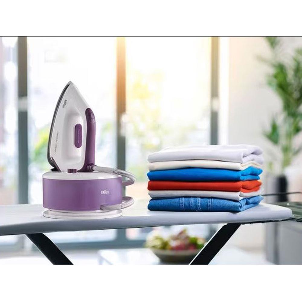 The new Braun CareStyle Compact combines the power of a steam generator with a practical compact design and convenience – saving you 50% time and space. Saves 50% time (internal laboratory test, compared to Braun TS 5 steam iron) and saves 50% space (compared to Braun IS 7144 steam generator iron)