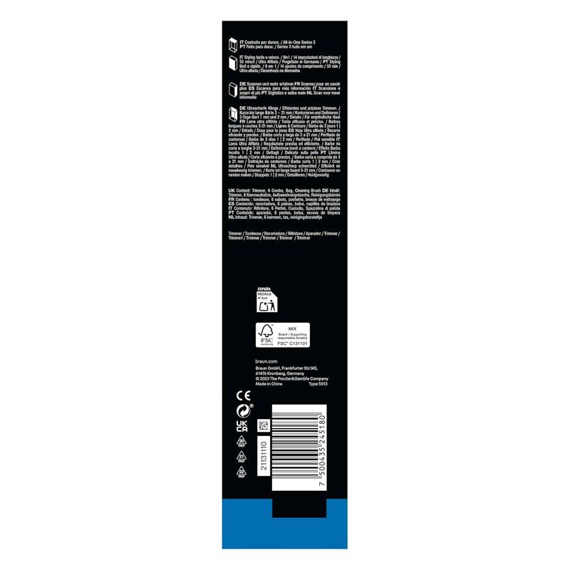Get salon-grade results from home with the Braun All-in-One 3 Beard Trimmer & Hair Clipper for Men, the ultimate 8-in-1 grooming kit designed for total control and effortless precision. With ultra-sharp stainless-steel blades, 14 adjustable length settings, and up to 50 minutes of cordless use, it’s the best men’s grooming kit in the UK for everyday trimming, shaping, and styling.
