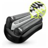 The ergonomic grip provides secure handling, even in wet conditions or when you rinse your shaver under running water.