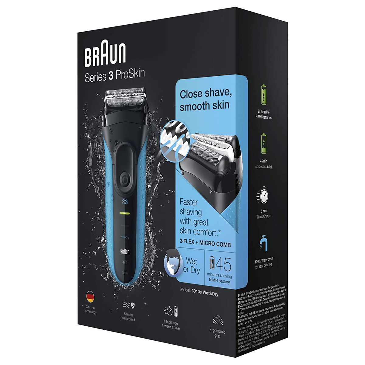 Braun Series 3 ProSkin Wet And Dry Electric Shaver Cordless And Rechargeable – Black/Blue