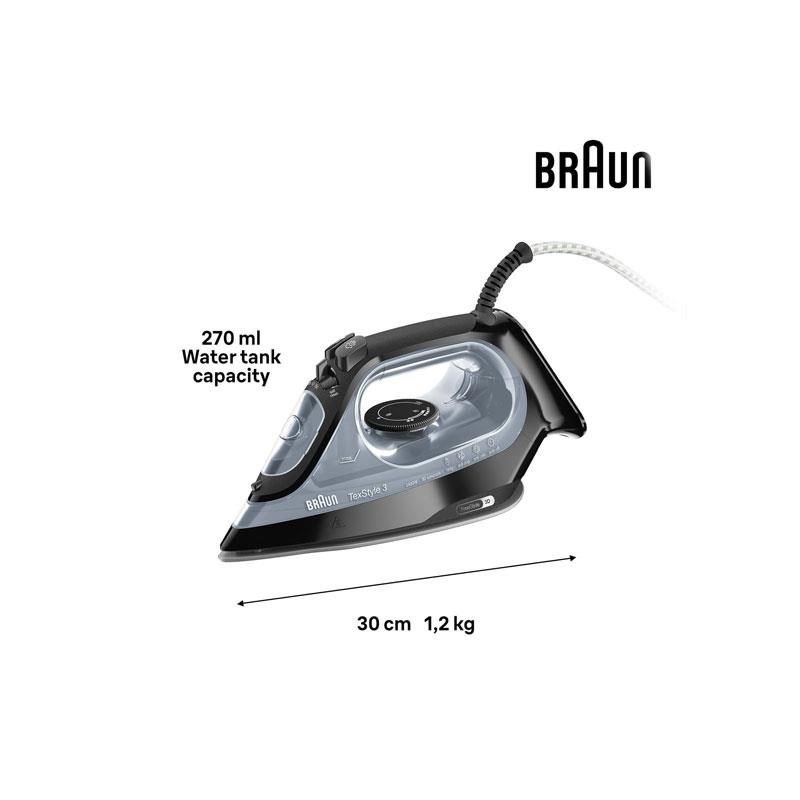 Braun TexStyle 3 Steam Iron 2400W With Super Ceramic Soleplate FreeGlide 3D Technology & 270ml Water Tank Black