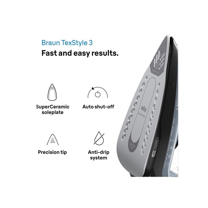 Braun TexStyle 3 Steam Iron SI3055BK with Super Ceramic Soleplate – Black