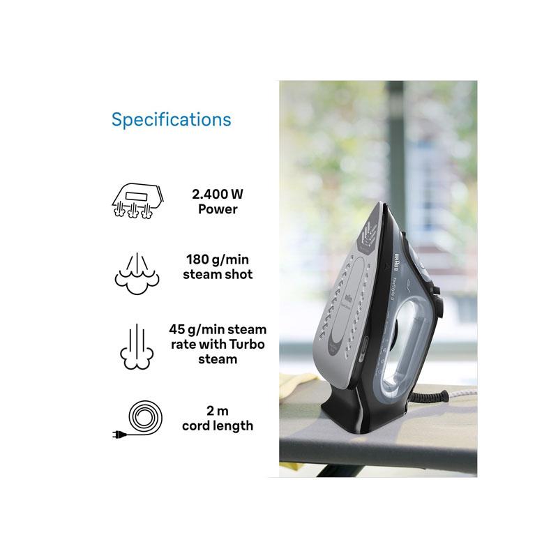 Braun TexStyle 3 Steam Iron 2400W With Super Ceramic Soleplate FreeGlide 3D Technology & 270ml Water Tank Black - Image 6