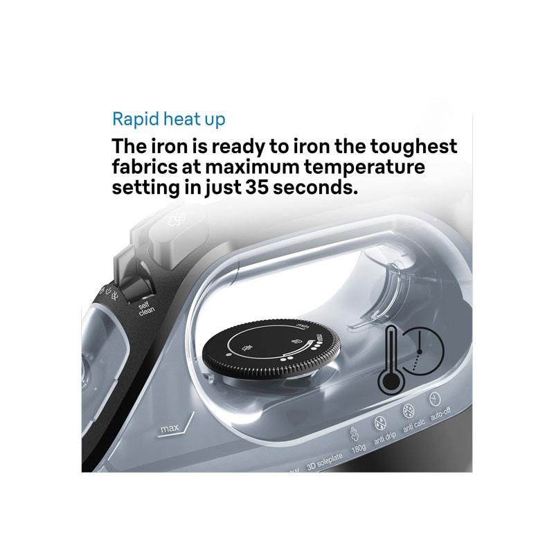 • Powerful 2400W Heating – Rapid heat-up in just 35 seconds for faster ironing performance.