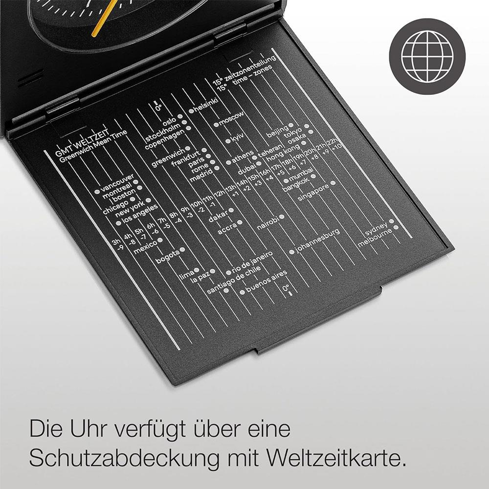 • Ideal for Travel – With its iconic design and compact size, this classic alarm clock is purpose-built for travel. It features a protective lid with a helpful world time zone map inside.