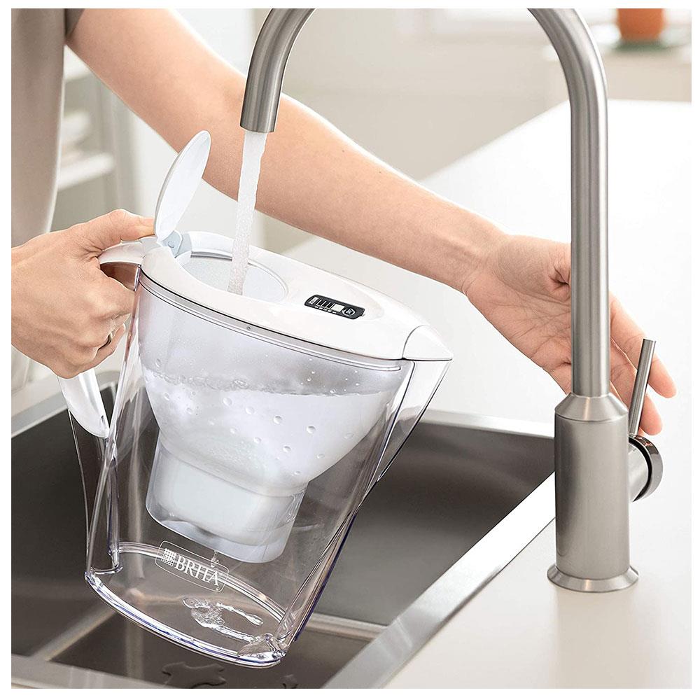 Marella Water Filter Jug By Brita Each cartridge filters 100 liters, so enjoy purer, fresh-tasting water at home for just a few pence per liter.