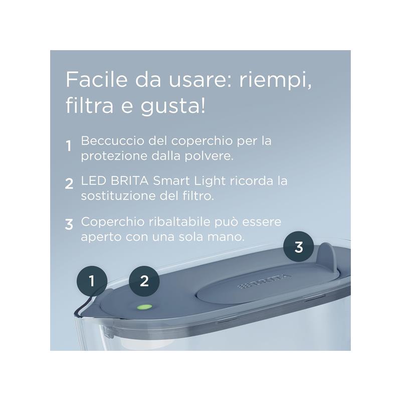 Introducing the BRITA Style Essential Blue Filter Jug, a cutting-edge water filtration solution designed for optimal convenience, taste, and performance. With BRITA Smart Light LED, this non-electric filter jug makes it easier than ever to enjoy fresh, filtered water while reminding you when to change the filter. Each MAXTRA PRO Pure Performance cartridge effectively filters up to 150 liters of tap water, improving taste by removing impurities such as chlorine, limescale, heavy metals, and microimpurities like PFAS and pesticides.