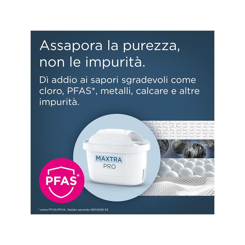 - Purification Method: MAXTRA PRO Pure Performance cartridge filters chlorine, limescale, heavy metals, PFAS, herbicides, and more.