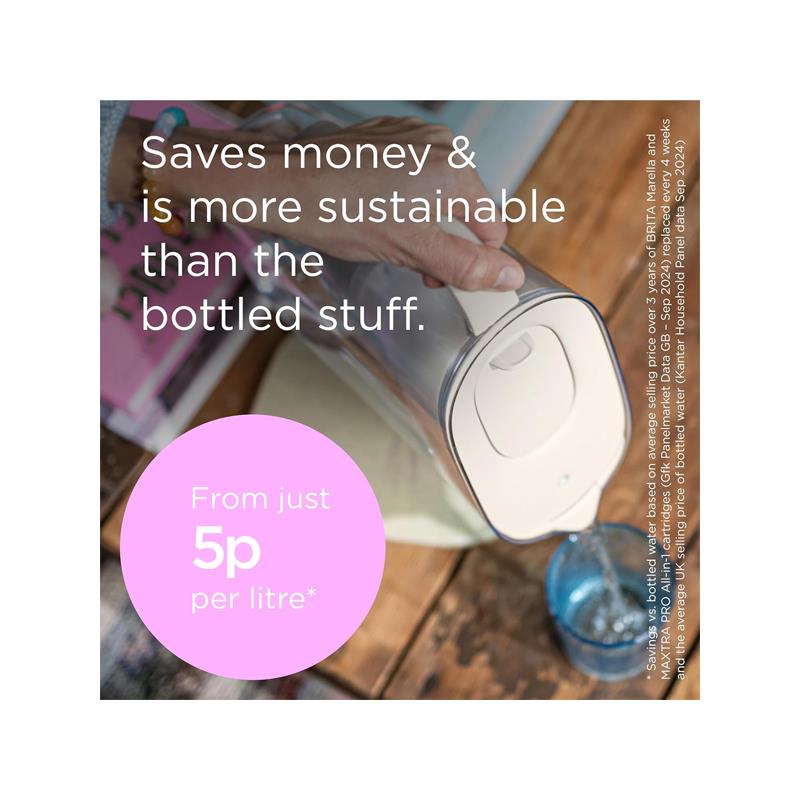 The BRITA Water Filter Jug is the easygoing solution to pure, great-tasting water. Designed for efficiency and convenience, this stylish jug fits neatly in your fridge door and is BPA-free and dishwasher-safe (except for the Smart Light LED). The MAXTRA PRO filter cartridge provides up to 150L of filtered water, reducing impurities and delivering a crisp, fresh taste every time you refill.