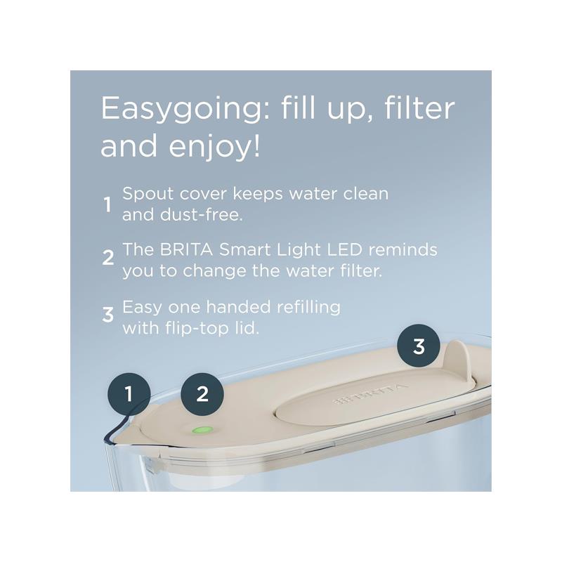 Smart Light LED technology ensures you never miss a filter change. This intuitive system measures time and filtered volume, so you know exactly when to replace the cartridge. The flip-top lid allows for easy one-handed refilling, while the spout cover keeps your water clean and dust-free.