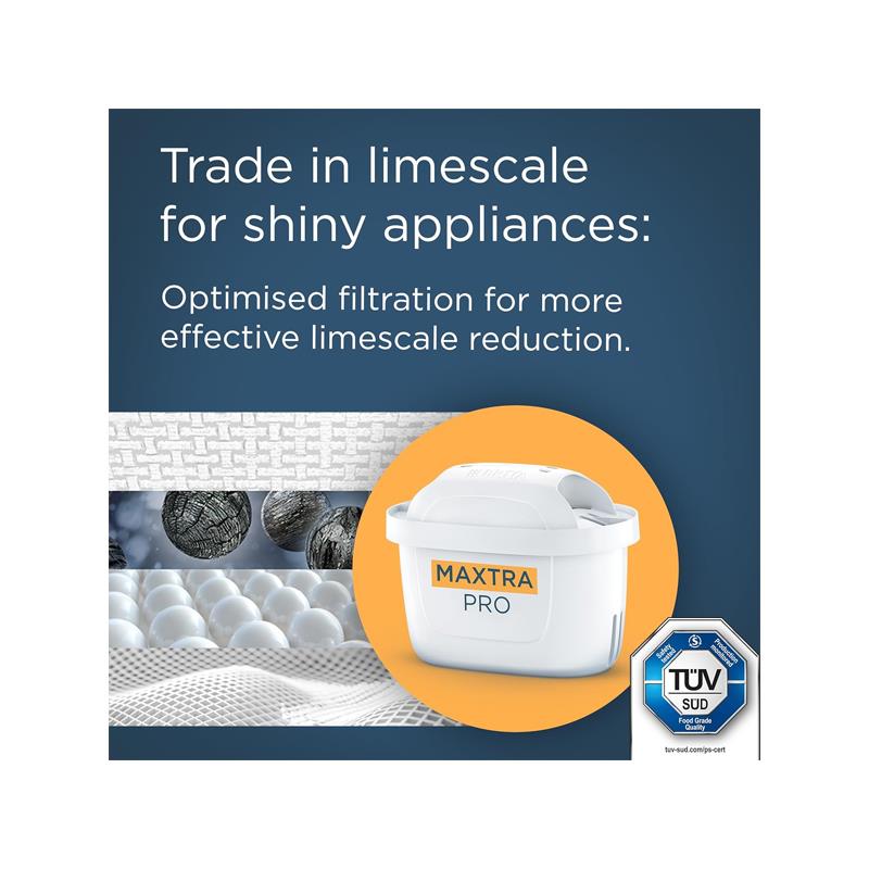 - Filter Efficiency: MAXTRA PRO removes chlorine, limescale, heavy metals, and fine particles (≥ 30 µm).