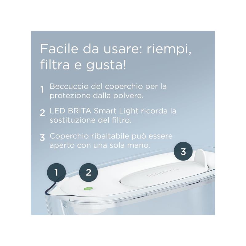 • BRITA Smart Light LED: Monitors usage and alerts you when to change the filter based on filtered time and volume.