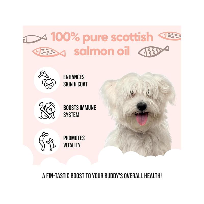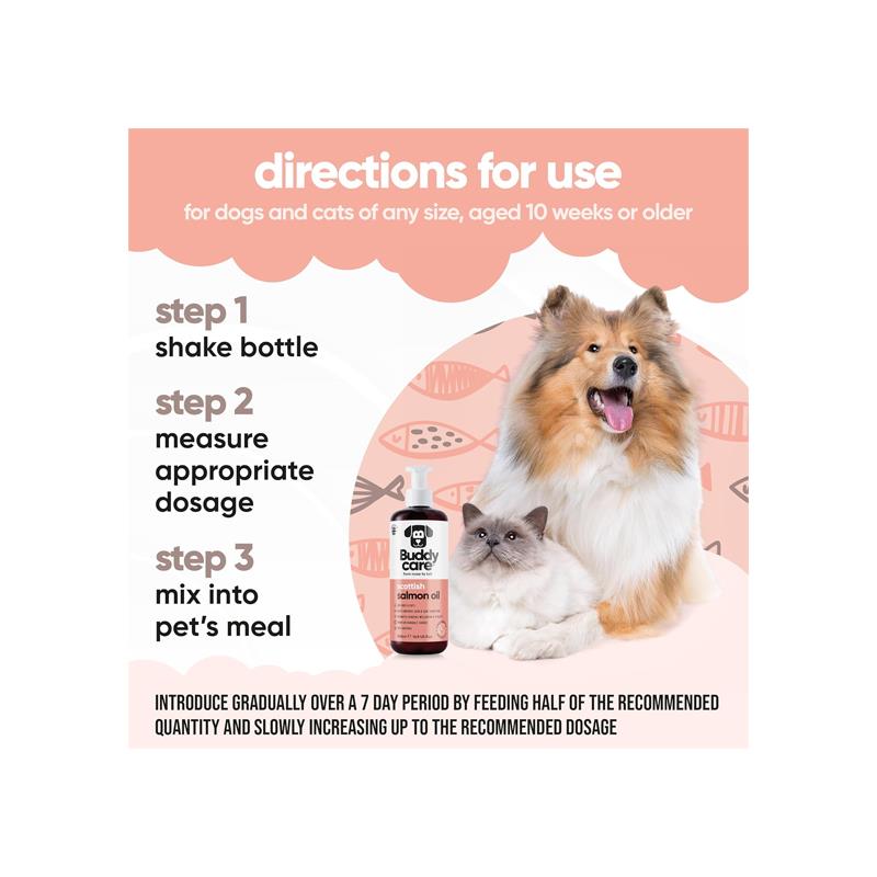 Buddycare Premium Scottish Salmon Oil for Dogs & Cats is a natural, high-quality supplement that provides essential omega 3, 6, and 9 fatty acids to promote optimal health for your pet. Sourced from eco-friendly Scottish farms, this fish oil helps maintain shiny coats, healthy skin, and supports joint, brain, and immune function in dogs and cats. Whether you’re managing dry, itchy skin, or boosting your pet’s overall vitality, this easy-to-use, allergen-free supplement ensures your furry friends get the nutrition they deserve.