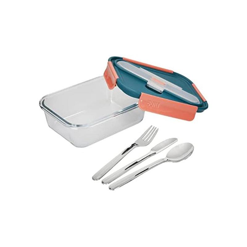 Built Tropics Glass Lunch Box With Cutlery 900ml Leak-Proof BPA Free Clear