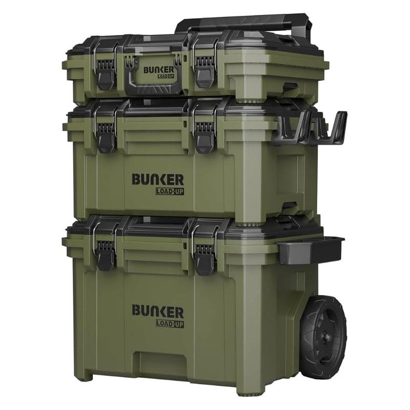 Bunker Load-Up Modular Tool Storage System 3 Tier Stackable Rolling Toolbox Set Organisers & Accessories 9 Piece