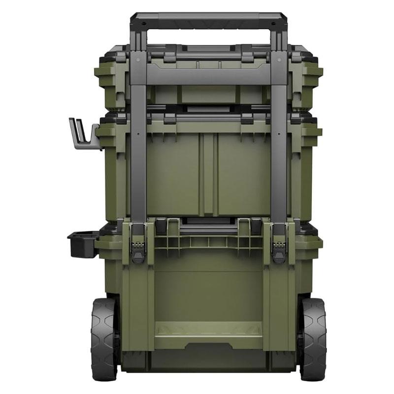 • 9-Piece Industrial Storage System – Includes a 340mm rolling toolbox, 230mm mid box, and 100mm compact top box with carry handle.