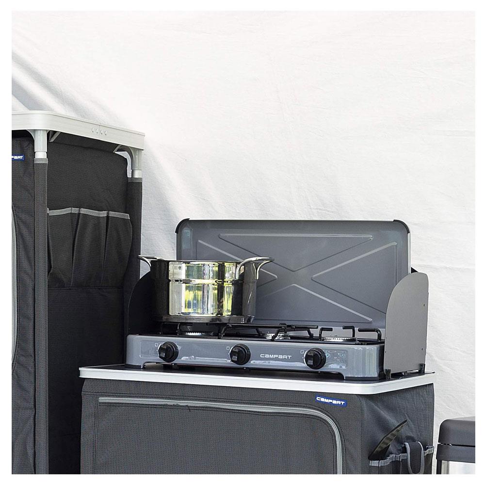 The Campart gas camping stove stands sturdy thanks to its anti-slip feet. Furthermore, it has a recess on the sides so you can easily lift and move the stove and store it in your caravan or tent. With a pack size of 62.7 x 33.5 x 12.5 cm, it even fits in your trunk or weekend. The 3 Stainless Steel burners are fixed so they will not come apart during transportation. Altogether this makes the Campart gas camping stove ideal for camping and outdoors.