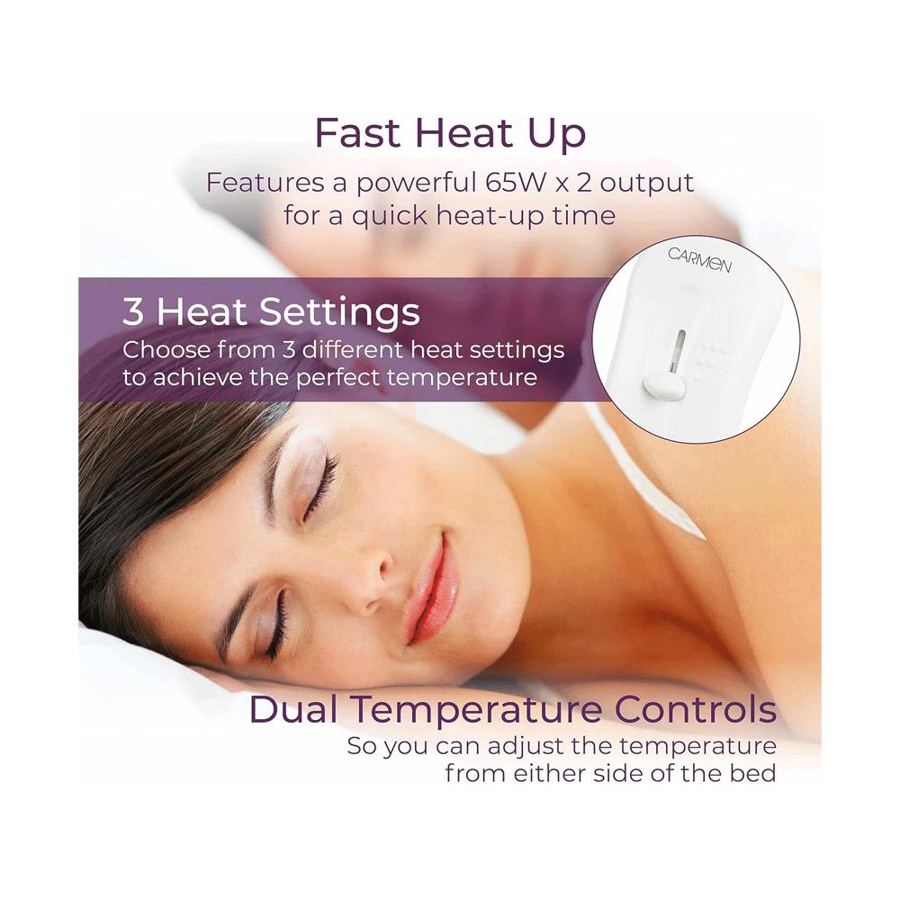 • 3 HEAT SETTINGS: Choose from 3 different heat settings, to achieve the perfect temperature for a great night’s sleep