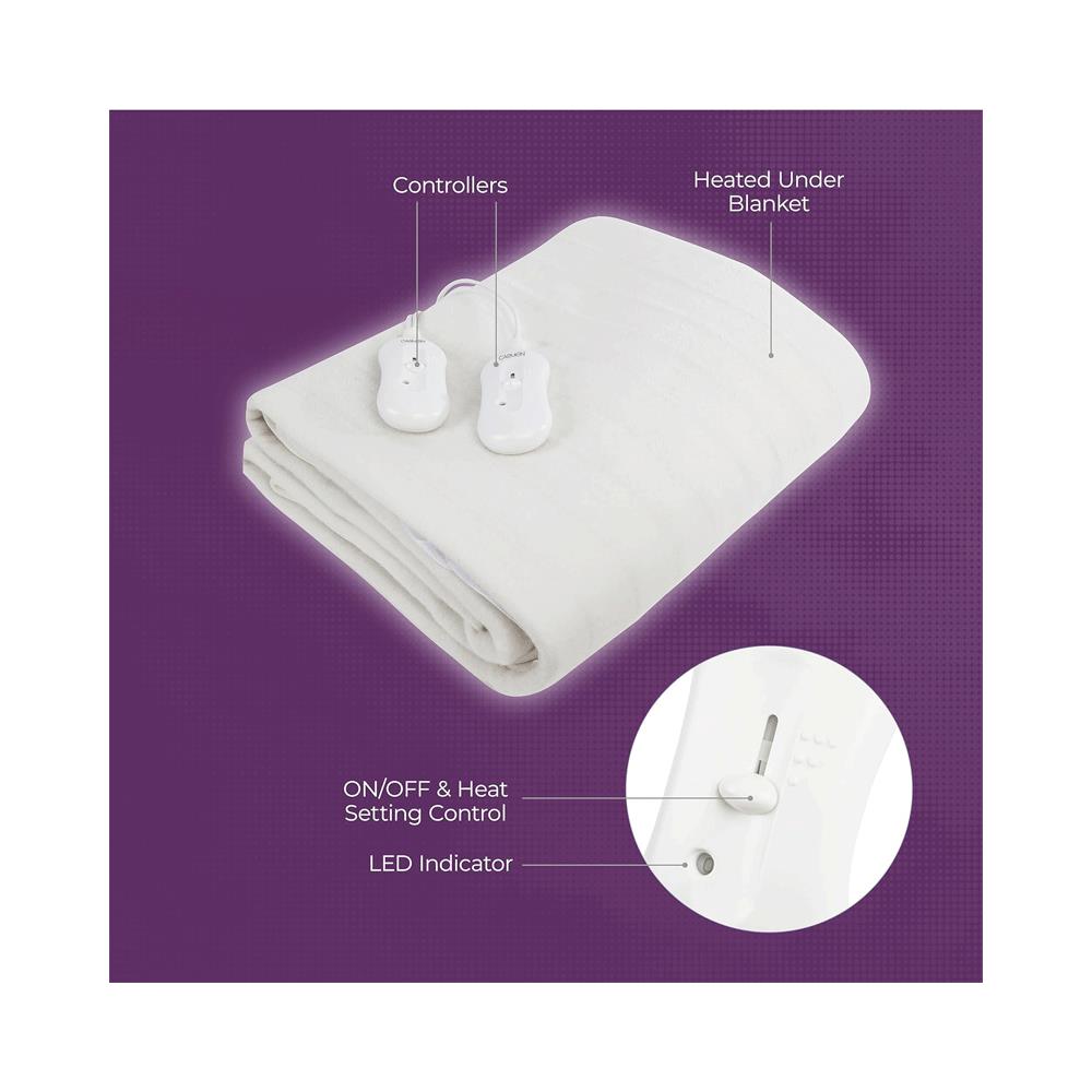 Carmen Double Fitted Electric Blanket With Overheat Protection 40cm Skirt - White - Image 7