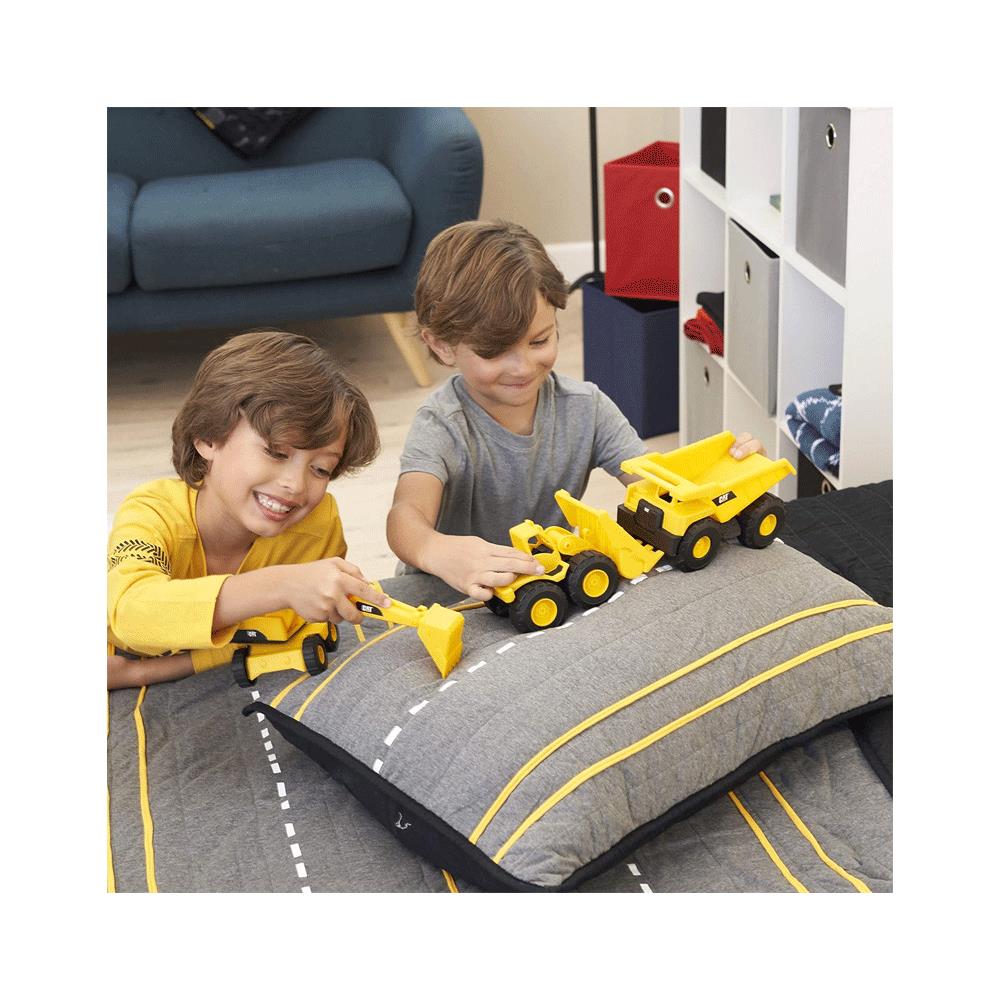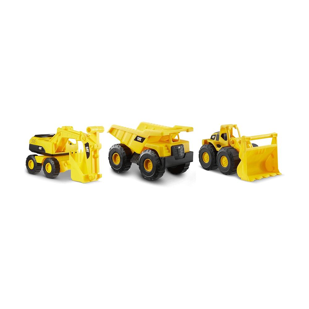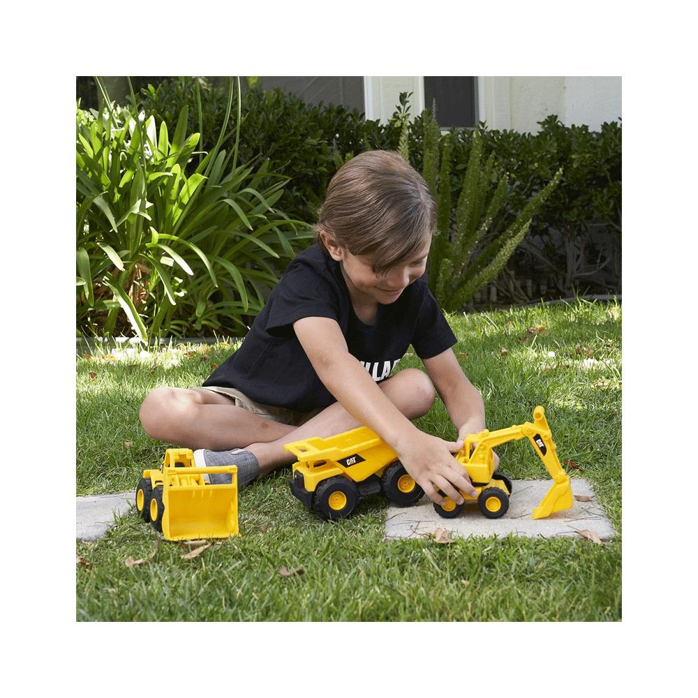 • Three pack set of 7” push-powered Caterpillar vehicles including a Dump Truck, Wheel Loader and an Excavator