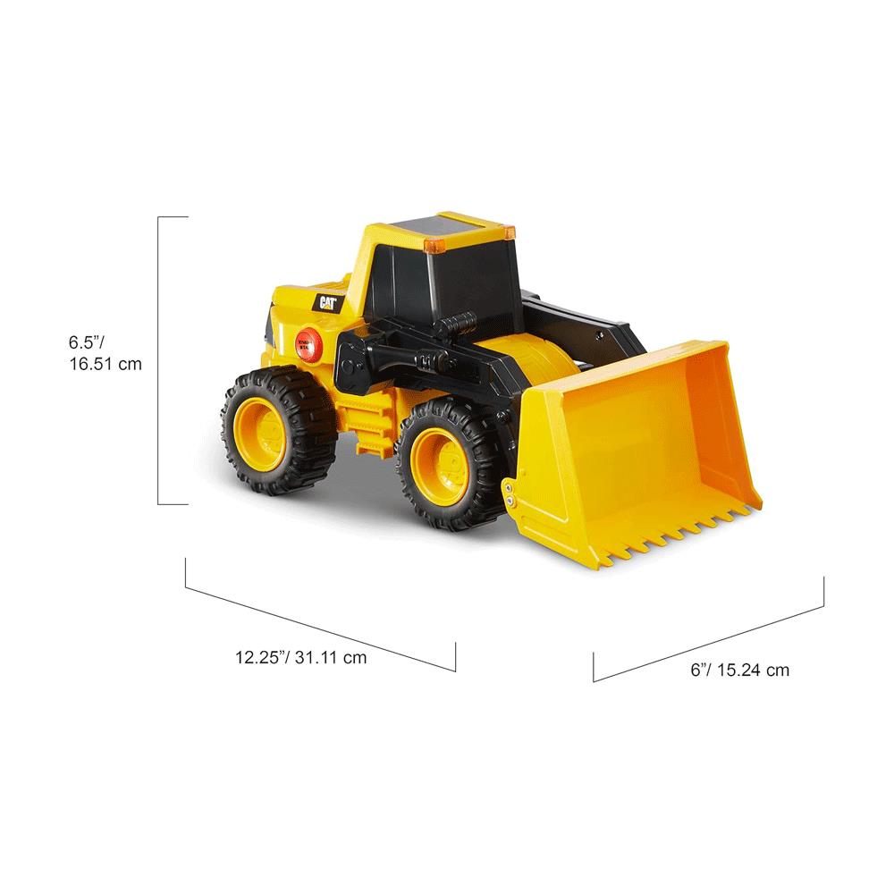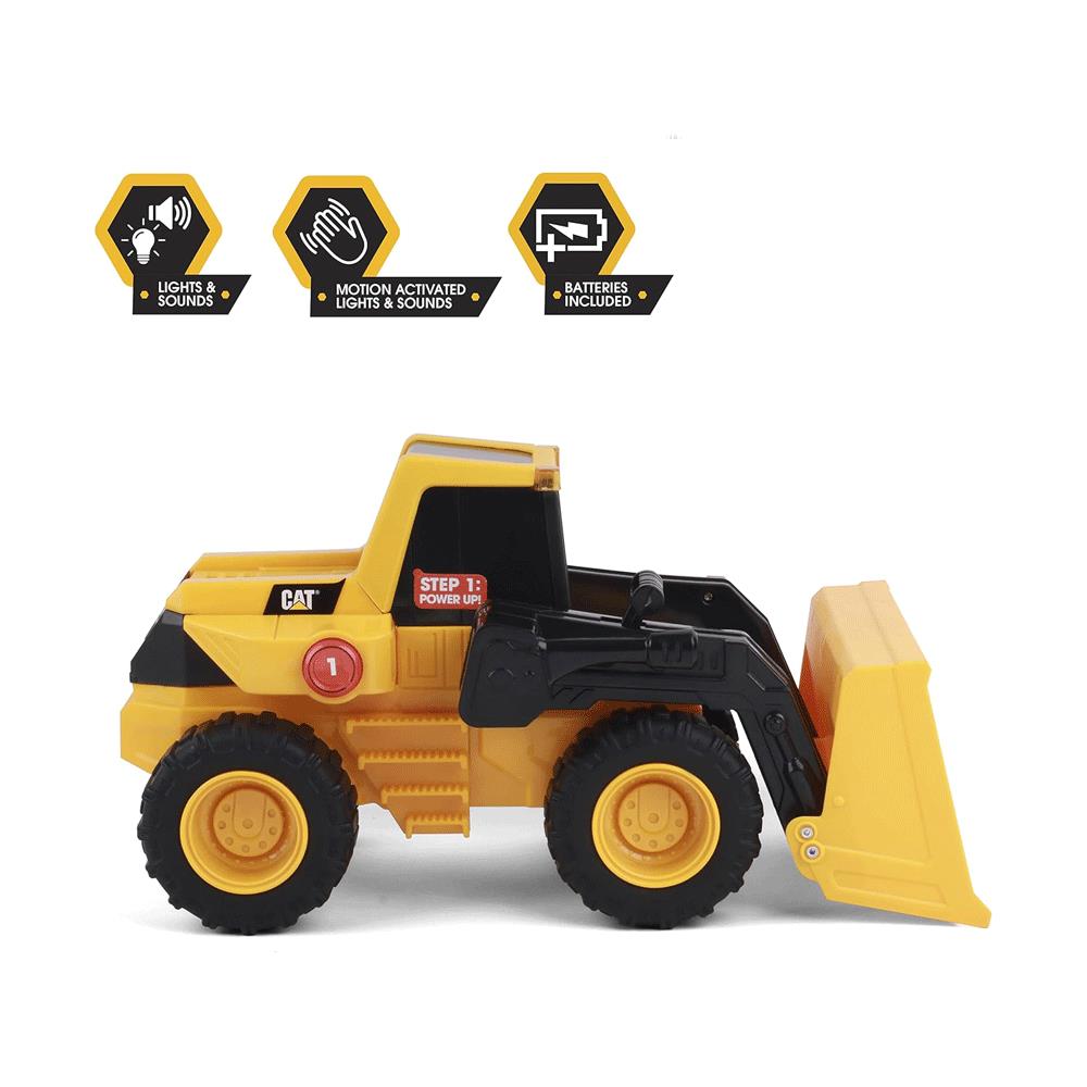 • REAL WORKING FEATURES: The Cat Construction Power Hauler Wheel Loader features a working bucket scoop that makes hydraulic sounds when it is lifted.