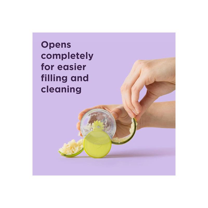 The updated GarlicZoom design fits more cloves at once and opens fully for easy filling and removal. Odour-resistant stainless steel blades help minimise lingering garlic smells on hands and surfaces. The removable compartments allow for safe handling and hassle-free cleaning.