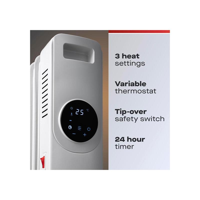 Daewoo Oil Filled Radiator 1500W Adjustable Thermostat Overheat Protection Timer LED Display Cord Storage Remote Control White - Image 4