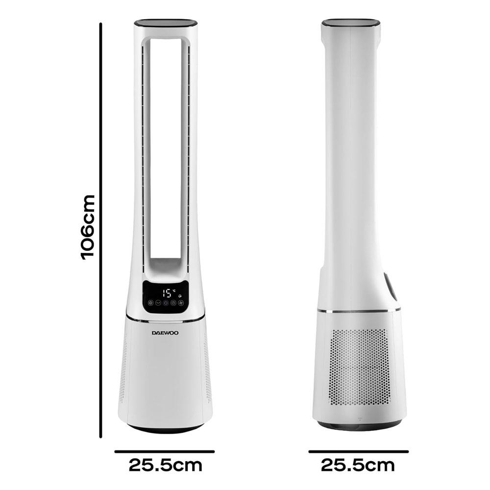 Daewoo 2-in-1 Bladeless Tower Fan with HEPA Air Purifier – White | Quiet, Smart Cooling for Clean, Comfortable Living