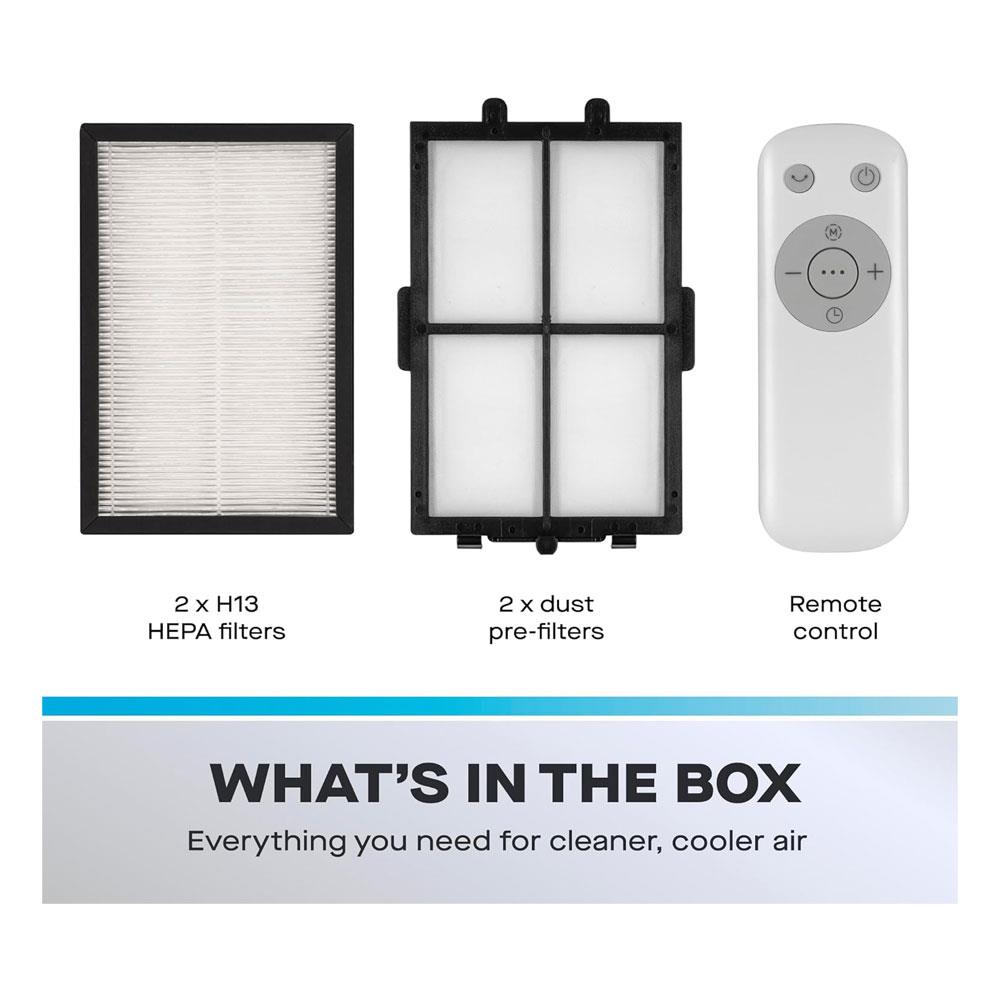 • Filtration: Dual HEPA 13 + Pre-filters + Ioniser
