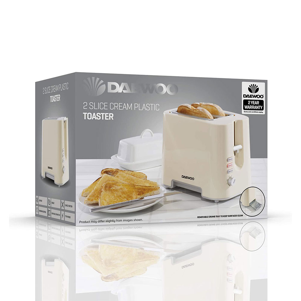 Daewoo 2 Slice Toaster Plastic 800 W – Cream