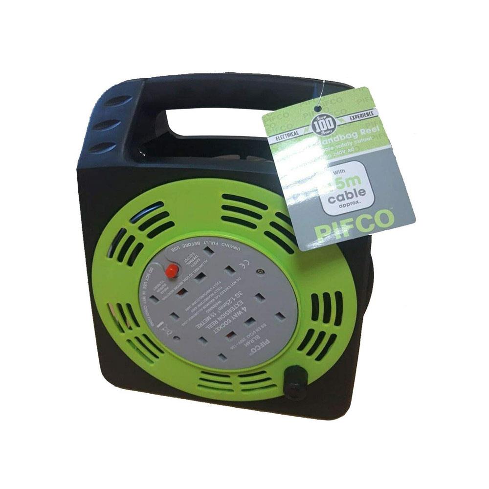 Daewoo 4 Gang 15 Meter Handbag Reel Extension Lead – Green