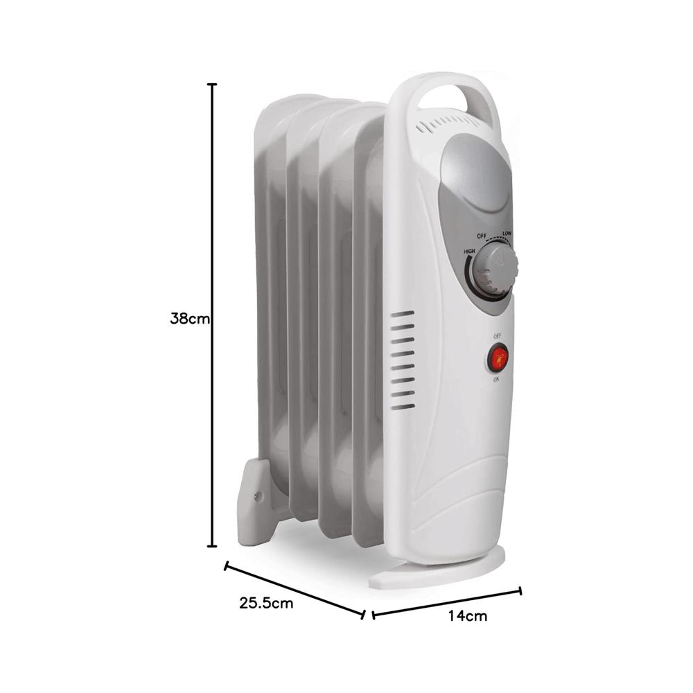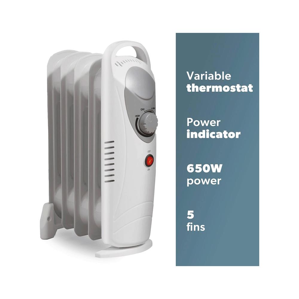 Daewoo 5 Fins Oil Filled Radiators 650W Mini Adjustable Thermostat & Carry Handle - White