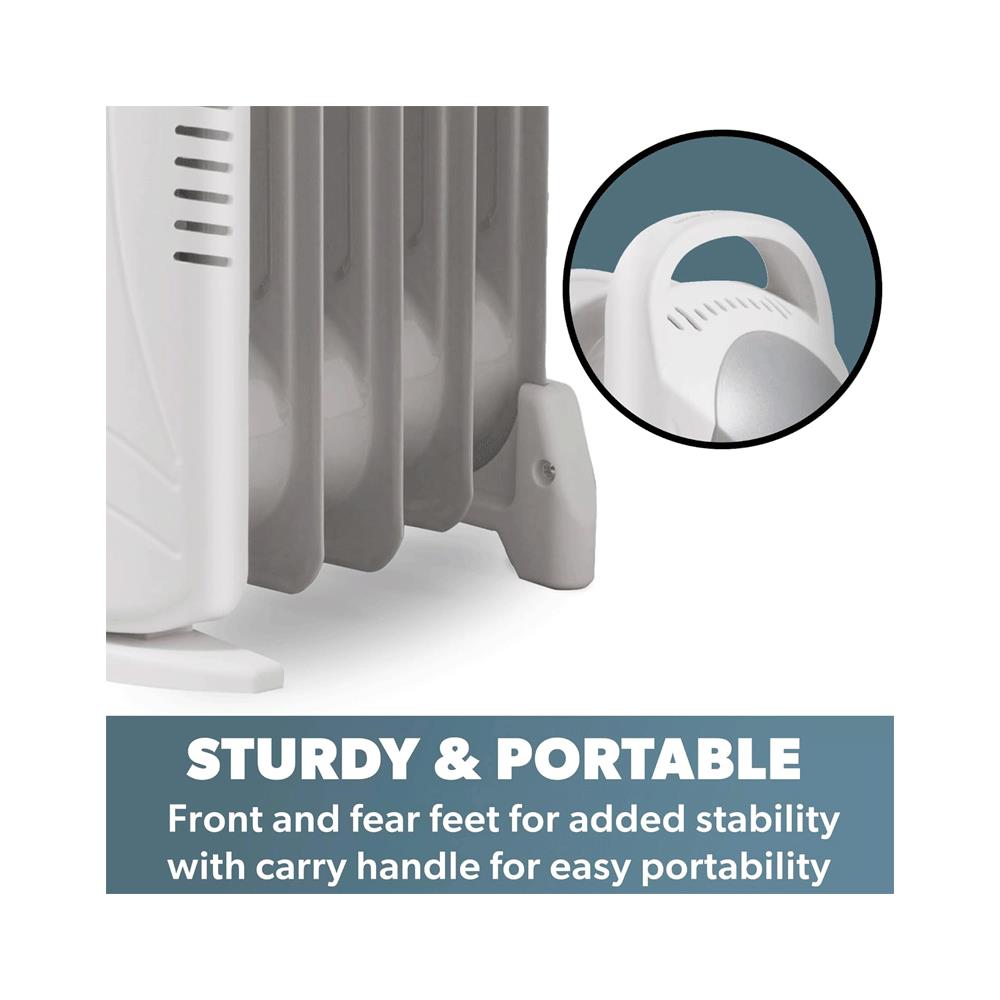 Daewoo 5 Fins Oil Filled Radiators 650W Mini Adjustable Thermostat & Carry Handle - White - Image 7