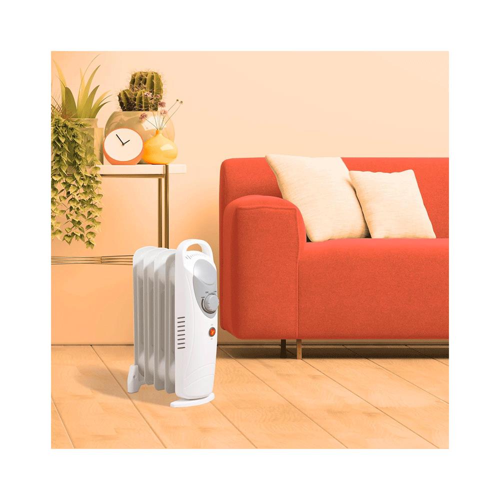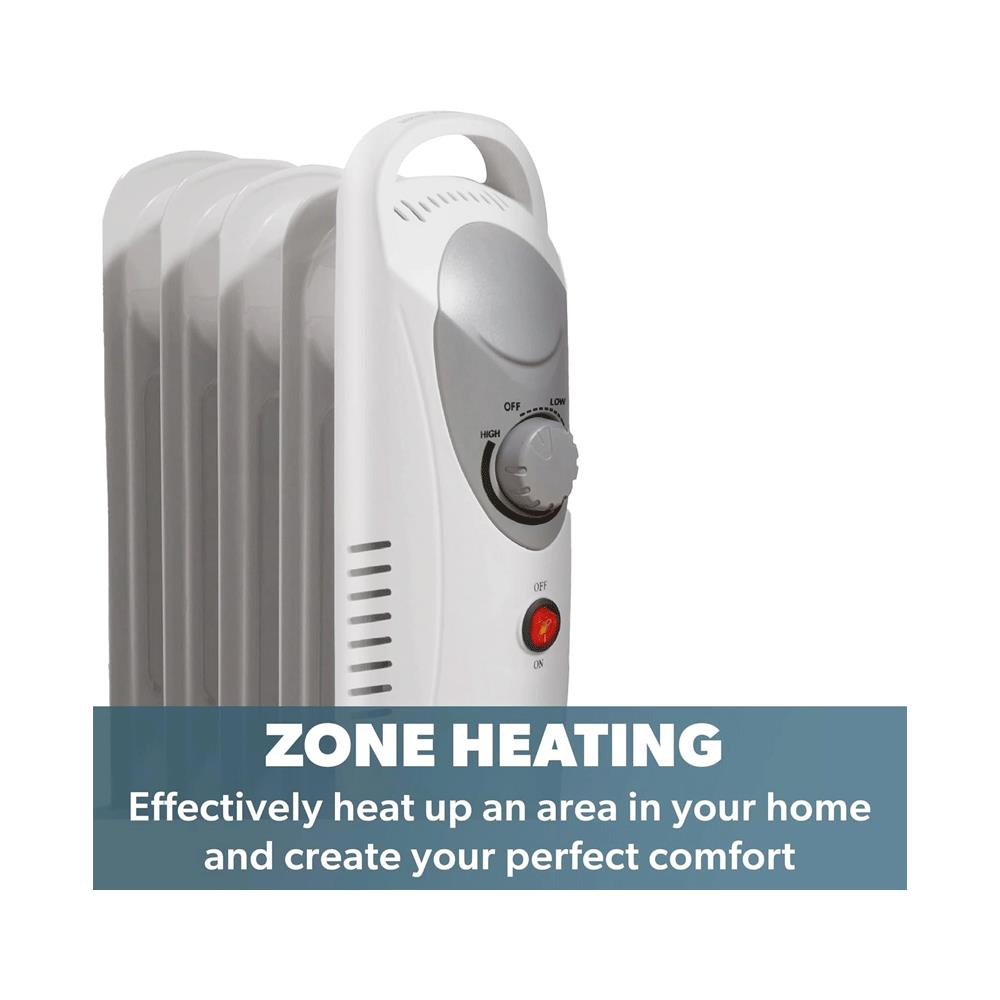Daewoo 5 Fins Oil Filled Radiators 650W Mini Adjustable Thermostat & Carry Handle - White - Image 5
