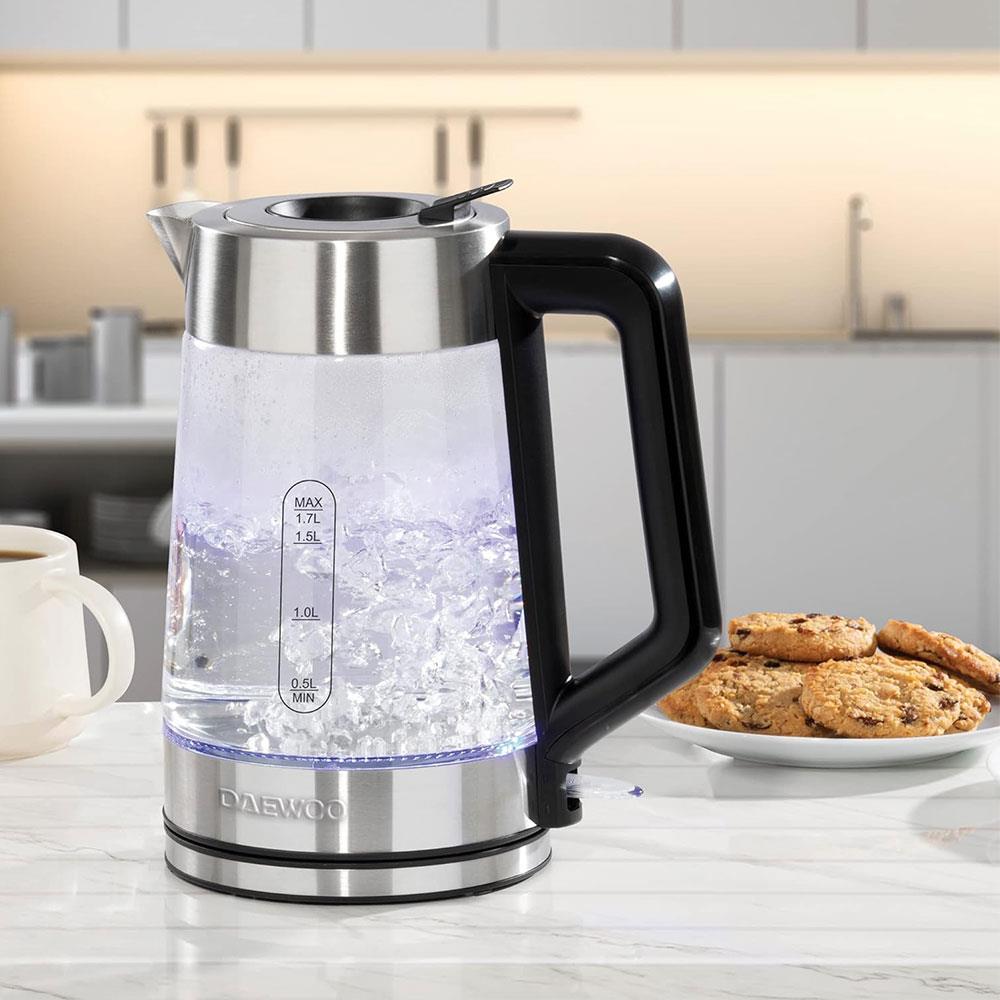 Daewoo Easy Fill LED Illuminating Glass Kettle 3000W 1.7 Litres – Silver
