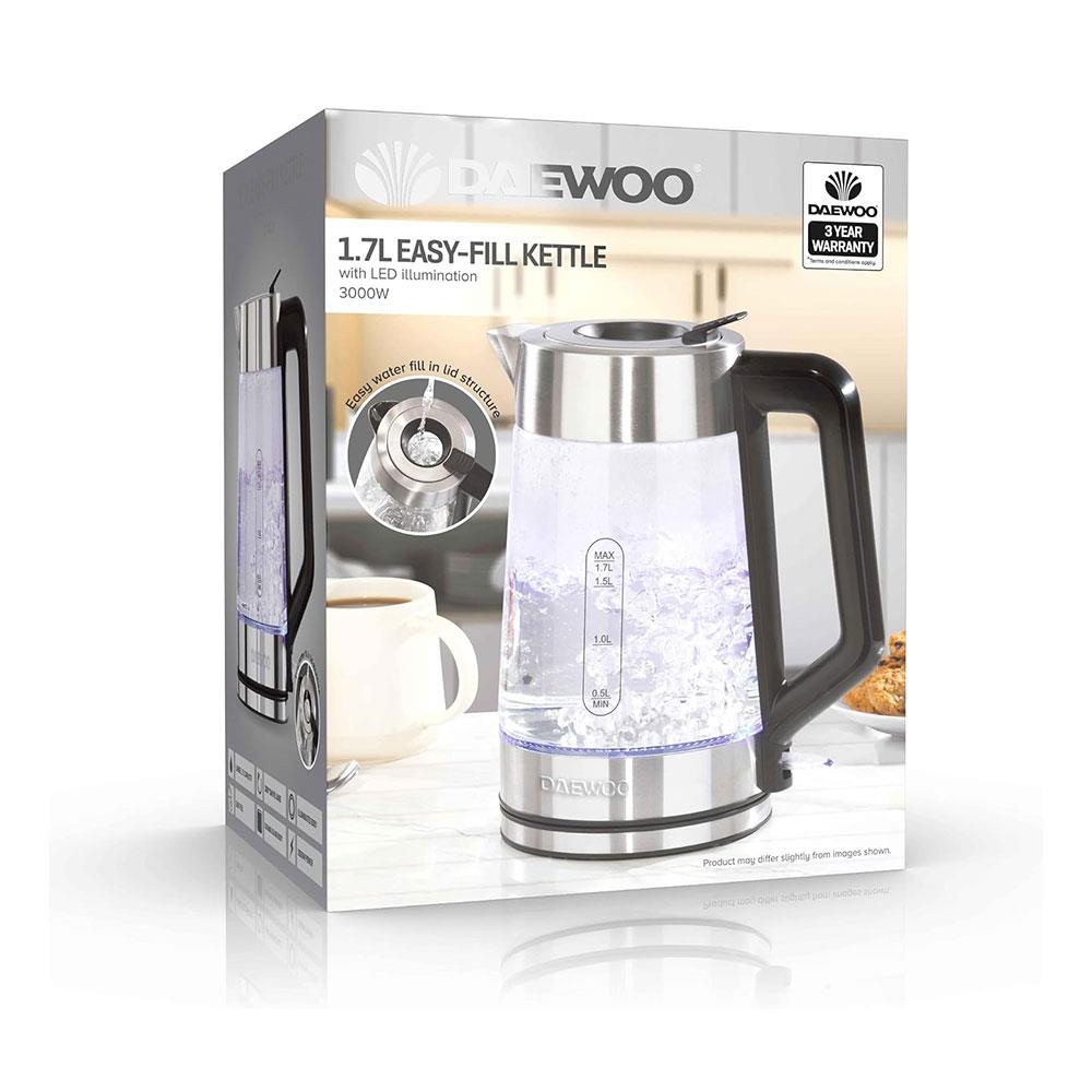 Daewoo Easy Fill LED Illuminating Glass Kettle 3000W 1.7 Litres