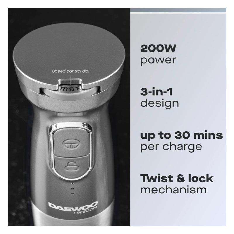 Daewoo Freedom Cordless Pro Handheld 3-in-1 Blender with Whisk & Mini Chopper – 200W Silver