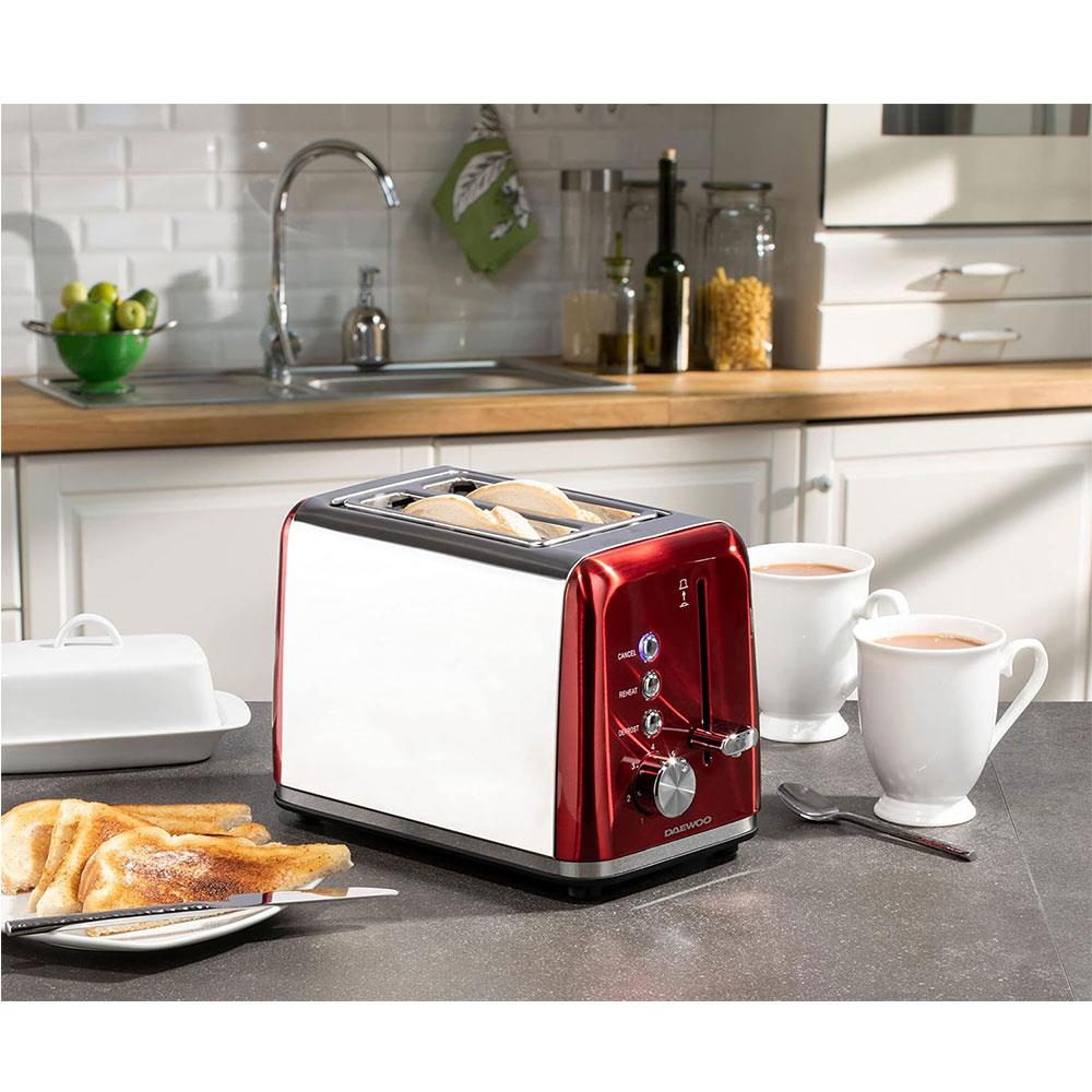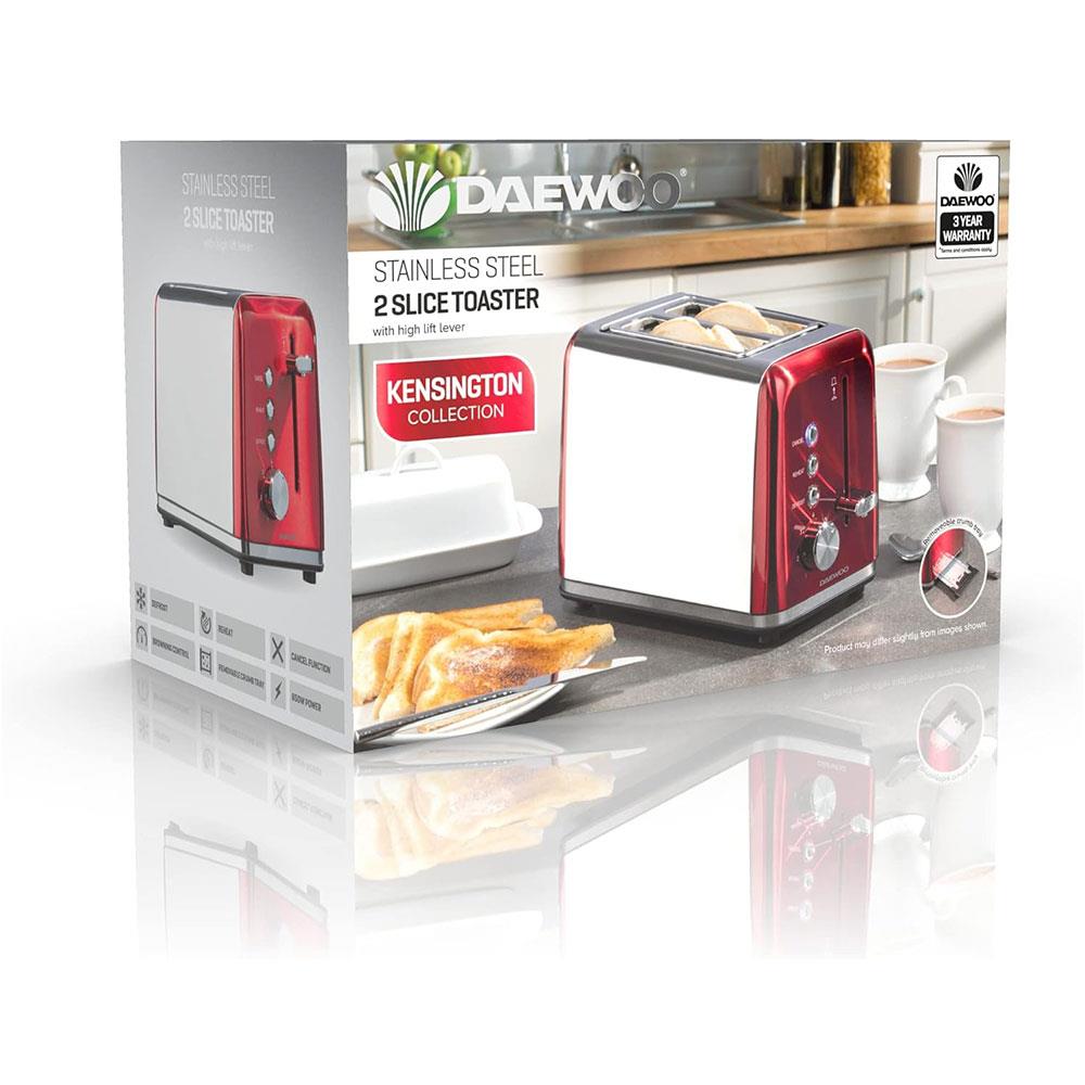 Daewoo Kensington 2 Slice Toaster Stainless Steel 810W – Red