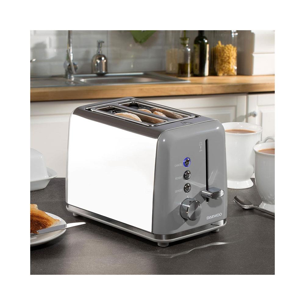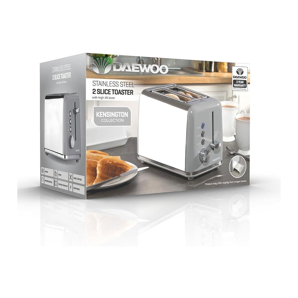 Daewoo Kensington 2 Slice Toaster Stainless Steel 870W – Grey