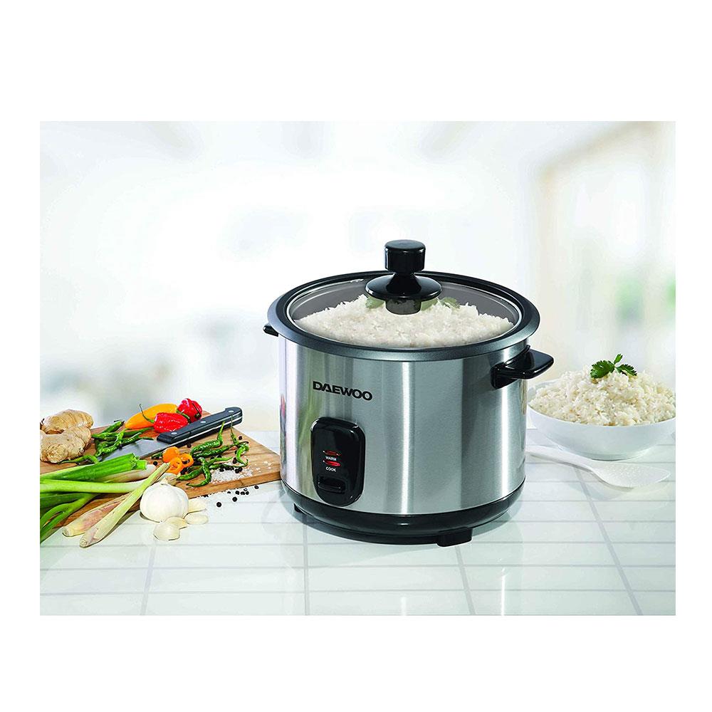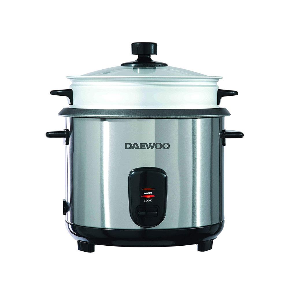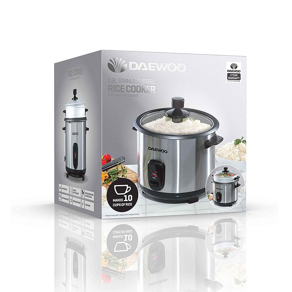 Daewoo Rice Cooker With Steamer Basket Stainless Steel 700 W 1.8 Litre – Silver