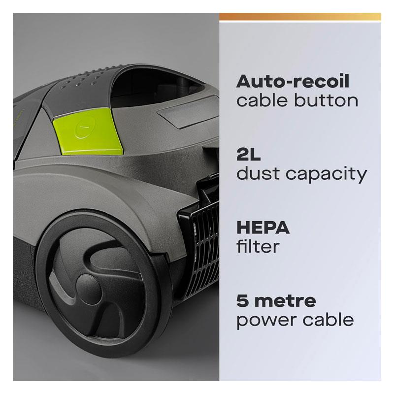 • Extended Reach – 5-metre cord with auto recoil + 2-metre flexible hose to cover more ground without unplugging.