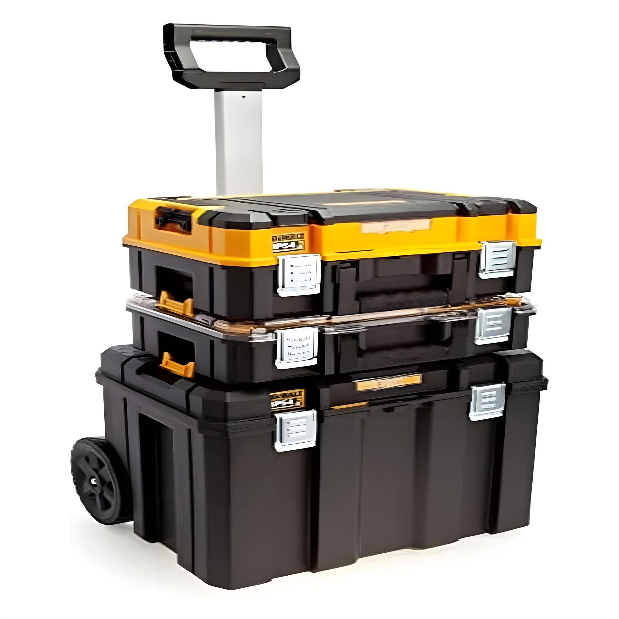 Dewalt TSTAK 2.0 Mobile Box Bundle With Organiser Cases & Deep Wheeled Storage Box Yellow/Black