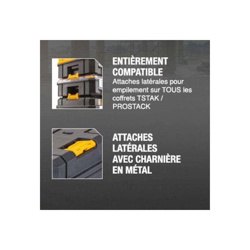 Built as part of the TSTAK 2.0 interlocking system, the DEWALT TSTAK IP54 Combo Kit Tool Box includes upgraded metal pin side latches for enhanced durability and long-term performance. It remains fully compatible with both the TSTAK 2.0 and previous TSTAK ranges, allowing seamless stacking and modular customisation.