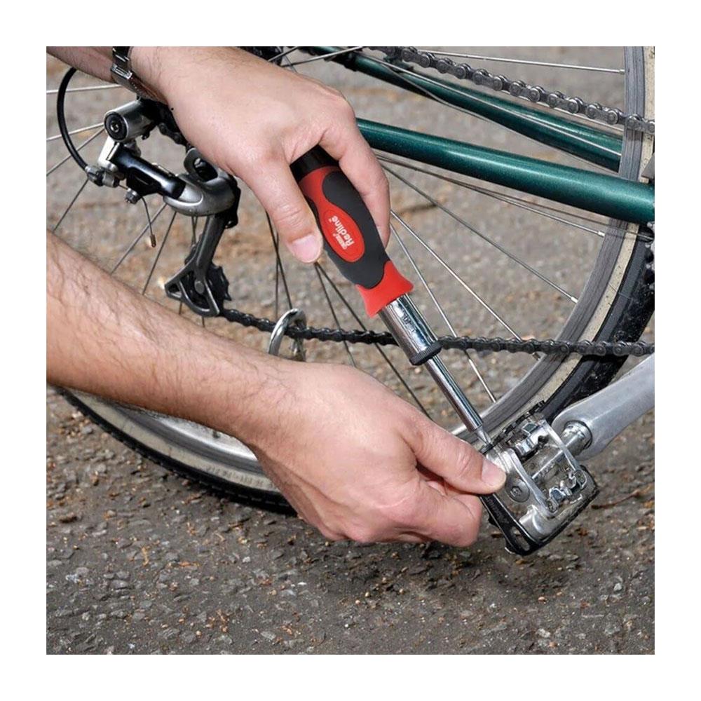 This 14-in-1 reversible ratchet screwdriver has a heavy-duty ratchet mechanism and a soft grip handle. There are 12 chromium-vanadium steel screwdriver bits stored inside the handle. The screwdriver is ideal for use around the home or in the garage and workshop.