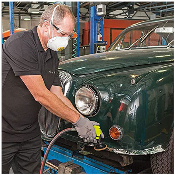 Draper Storm Force, low noise, low vibration air sander. Design for use in professional workshops and manufactured with a casing made from the latest composite plastics.