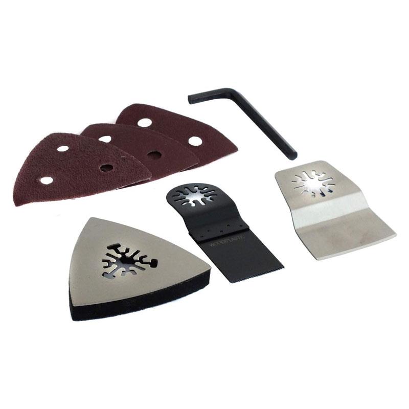 • Includes: Offset bi-metal saw blade, hook & loop base with sanding sheets, offset scraper blade