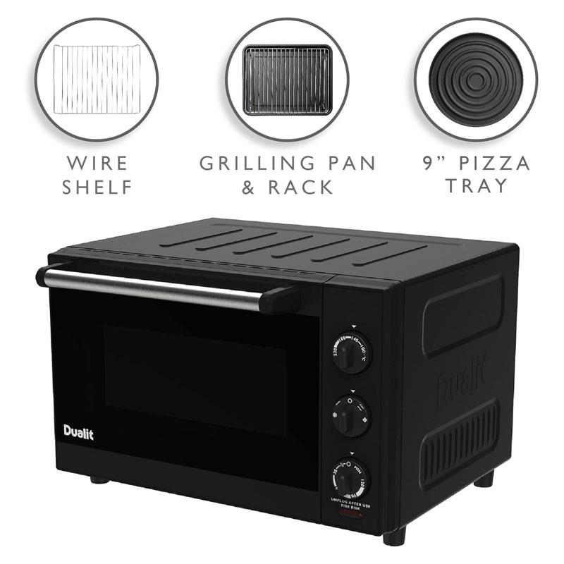 Dualit Electric Mini Oven 22 Litres Double Glazed Window Defrost Grill Roast & Bake Functions 1600W Black - Image 6